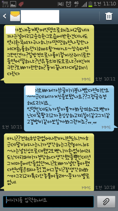 그리고 장난끼 심한 그 오빠가 또 전달해서 .. 다시 폭풍 문자가 오기 시작했어요ㅠㅠ