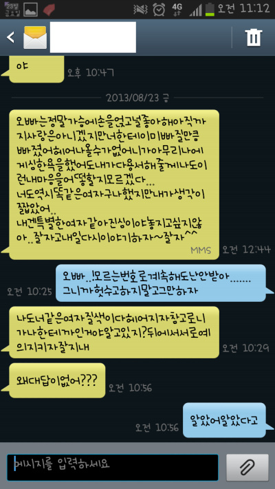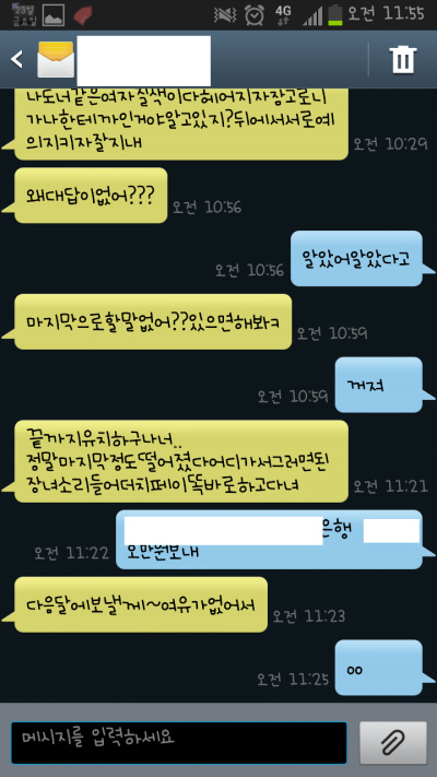 맞춤법 다 틀리고 진짜..내가 뭐에 씌여서 저런새끼랑 사겼는지 ㅠㅠ