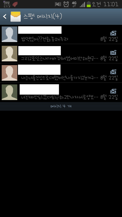 나도 문자하다 열받아서 되받아치다가 말이 안통해서 스팸차단 했더니